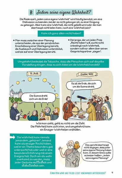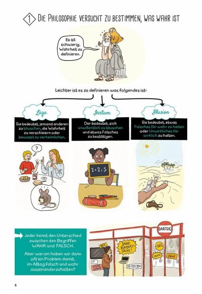 Was ist wahr ... ... und was ist falsch? Das ist gar nicht immer so leicht auseinanderzuhalten. Wir werden mit fake news belogen oder lügen uns selbst in die Tasche, machen uns Illusionen. Außerdem gibt es gar nicht so viel, was wir wirklich wissen. Auch die Wissenschaft pirscht sich oft nur langsam an eine Gewissheit heran, die dann manchmal wieder gar nicht mehr so gewiss ist. Selbst die formellen Methoden der Wahrheitsfindung, Logik und Mathematik, sind nicht so sicher wie sie scheinen. Und dann ist da noch die Moral: Müssen wir wirklich immer die Wahrheit sagen? Und sagen wir wirklich die Wahrheit, wenn wir verkünden, was wir nicht wissen, aber glauben? Kurz, die Sache mit der Wahrheit ist gar nicht einfach. Aber wichtig, wenn wir uns in der Welt orientieren wollen. Alle Grundthemen und -begriffe der Philosophie im Comic Die Bücher dieser neuen Reihe stellen verständich wichtige Themen der Philosophie vor. Sie gehen philosophischen Fragen anhand konkreter Beispiele nach, anhand von Mythen und Texten berühmter Philosophen - in Comicform.