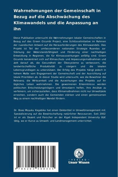 Diese Publikation untersucht die Wahrnehmungen lokaler Gemeinschaften in Bezug auf das Green Gicumbi Project, eine Schlüsselinitiative im Rahmen der ruandischen Antwort auf die Herausforderungen des Klimawandels. Das Projekt ist Teil der umfassenderen nationalen Strategie Ruandas zur Stärkung der Widerstandsfähigkeit und Förderung einer nachhaltigen Entwicklung in Regionen, die für Klimaauswirkungen anfällig sind. Green Gicumbi konzentriert sich auf Klimaschutz- und Anpassungsmaßnahmen und zielt darauf ab, die Gesundheit der Ökosysteme zu verbessern, die landwirtschaftliche Produktivität zu steigern und die lokalen Lebensgrundlagen zu unterstützen. Der Erfolg des Projekts hängt jedoch in hohem Maße vom Engagement der Gemeinschaft und der Ausrichtung auf lokale Prioritäten ab. In dieser Studie wird untersucht, wie die Bewohner die Relevanz, die Wirksamkeit und die Auswirkungen des Projekts auf ihr tägliches Leben wahrnehmen. Die gewonnenen Erkenntnisse werden politischen Entscheidungsträgern und Umsetzern helfen, ihre Ansätze zu verfeinern, um sicherzustellen, dass Klimamaßnahmen nicht nur Umweltziele erreichen, sondern auch die Gemeinden stärken und einen gemeinsamen Weg zu einem nachhaltigen Wandel fördern.