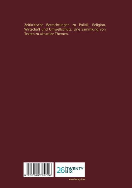 Zeitkritische Betrachtungen zu Politik, Religion, Wirtschaft und Umweltschutz. Eine Sammlung von Texten zu aktuellen Themen.