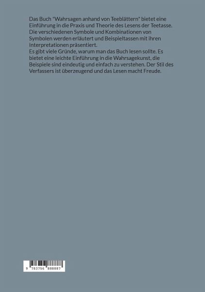 Das Buch "Wahrsagen anhand von Teeblättern" bietet eine Einführung in die Praxis und Theorie des Lesens der Teetasse. Die verschiedenen Symbole und Kombinationen von Symbolen werden erläutert und Beispieltassen mit ihren Interpretationen präsentiert. Es gibt viele Gründe, warum man das Buch lesen sollte. Es bietet eine leichte Einführung in die Wahrsagekunst, die Beispiele sind eindeutig und einfach zu verstehen. Der Stil des Verfassers ist überzeugend und das Lesen macht Freude.