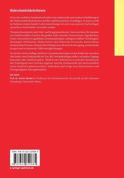 Dieses fest etablierte Standardwerk liefert eine umfassende und moderne Einführung in die Wahrscheinlichkeitstheorie und ihre maßtheoretischen Grundlagen. Es kann sowohl im Rahmen entsprechender Lehrveranstaltungen als auch zum späteren Nachschlagen speziellerer Sachverhalte verwendet werden.