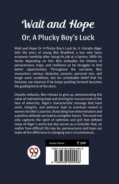 Wait and Hope Or A Plucky Boy's Luck by Jr. Horatio Alger tells the story of young Ben Bradford, a boy who faces economic hardship after losing his job at a factory. With his family depending on him, Ben embodies the themes of perseverance, hope, and resilience as he struggles to find better opportunities. Throughout the narrative, Ben encounters various obstacles, poverty, personal loss, and tough work conditions, but his unshakable belief that his fortunes can improve if he keeps pushing forward becomes the guiding force of the story. Despite setbacks, Ben refuses to give up, demonstrating the value of maintaining hope and striving for success even in the face of adversity. Alger's characteristic message that hard work, integrity, and patience lead to eventual reward is woven into Ben's journey, illustrating how determination and a positive attitude can lead to a brighter future. The novel not only captures the spirit of optimism and grit that defined many of Alger's works but also serves as a reminder that, no matter how difficult life may be, perseverance and hope can make all the difference in changing one's circumstances.