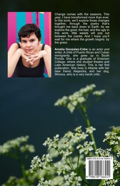 Change comes with the seasons. This year, I have transformed more than ever. In this book, we'll explore those changes together, through the poetry that's brought me back down to Earth. As we explore the good, the bad, and the ugly in this work, little weeds will pop out between the cracks. And I hope you'll wait for me where the growth begins: by the grass.