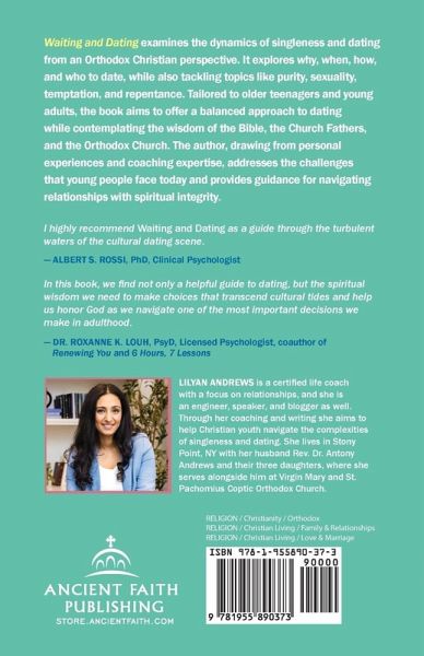 Waiting and Dating explores the dynamics of singleness and dating from an Orthodox Christian perspective. It explores why, when, how, and who to date, while also tackling topics like purity, sexuality, temptation, and repentance. Tailored to older teenagers and young adults, the book aims to offer a balanced approach to dating while contemplating the wisdom of the Bible, the Church Fathers, and the Orthodox Church. The author, drawing from personal experiences and coaching expertise, addresses the challenges that young people face today and provides guidance for navigating relationships with spiritual integrity.