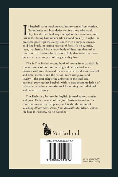 In baseball, as in much poetry, beauty comes from tension. Groundrules and boundaries confine those who would play, but the best find ways to exploit their strictures, and just as the daring base runner takes second on a fly to right, the practiced poet trips the sleepy reader with a surprise rhyme, bold line break, or a jarring reversal of foot. It's no surprise, then, that hardball has a larger body of literature than other sports, or that aficionados are more likely than others to quote lines of verse in support of the game they love. This is Tim Peeler's second book of poems from baseball. It contains some of his most moving and best-crafted poetry. Starting with time-honored themes--fathers and sons, baseball and time, memory and the nation, team and player and loyalty--the poet adapts the universal to the local and personal, proving that baseball, with its easy accommodation of reflection, remains a powerful tool for mining our individual and collective history.