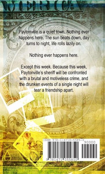 Paytonville is usually such a quiet town - one of those places where nothing much ever happens to trouble the good folk who live there: the sun beats down relentlessly, day turns to night, and life rolls lazily on. But this week is like no other: within hours of a young woman being reported missing the town's sheriff finds herself beginning an investigation into what can only be considered a brutal and motiveless crime, while at the same time a friendship between two men is torn apart by the drunken events of a single night...