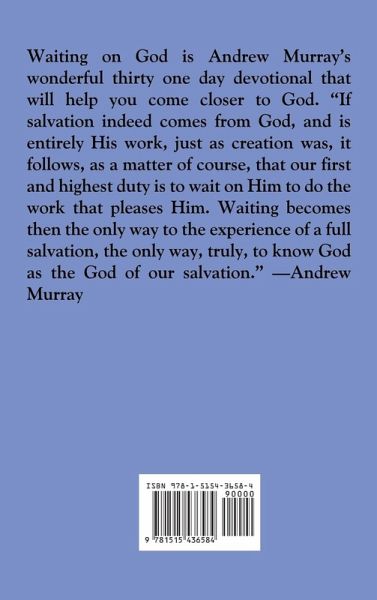 Waiting on God is Andrew Murray's wonderful thirty one day devotional that will help you come closer to God. "If salvation indeed comes from God, and is entirely His work, just as creation was, it follows, as a matter of course, that our first and highest duty is to wait on Him to do the work that pleases Him. Waiting becomes then the only way to the experience of a full salvation, the only way, truly, to know God as the God of our salvation." -Andrew Murray