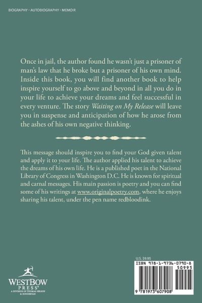 Once in jail, the author found he wasnt just a prisoner of mans law that he broke but a prisoner of his own mind. Inside this book, you will find another book to help inspire yourself to go above and beyond in all you do in your life to achieve your dreams and feel successful in every venture. The story Waiting on My Release will leave you in suspense and anticipation of how he arose from the ashes of his own negative thinking.
