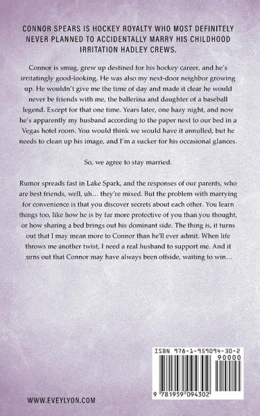 Connor Spears is hockey royalty who most definitely never planned to accidentally marry his childhood irritation Hadley Crews. Connor is smug, grew up destined for his hockey career, and he's irritatingly good-looking. He was also my next-door neighbor growing up. He wouldn't give me the time of day and made it clear he would never be friends with me, the ballerina and daughter of a baseball legend. Except for that one time. Years later, one hazy night, and now he's apparently my husband according to the paper next to his bed in a Vegas hotel room. You would think we would have it annulled, but he needs to clean up his image, and I'm a sucker for his occasional glances. So, we agree to stay married. Rumor spreads fast in Lake Spark, and the responses of our parents, who are best friends, well, uh... they're mixed. But the problem with marrying for convenience is that you discover secrets about each other. You learn things too, like how he is by far more protective of you than you thought, or how sharing a bed brings out his dominant side. The thing is, it turns out that I may mean more to Connor than he'll ever admit. When life throws me another twist, I need a real husband to support me. And it turns out that Connor may have always been offside, waiting to win... Connor and Hadley bring heartwarming steam to this marriage-of-convenience romance with a hint of enemies-to-lovers and a dash of unrequited love. Waiting to Win can be read as a complete standalone and is the second book in the interconnected Lake Spark Off-Season series which is a spin-off of the Lake Spark series that includes their parents' stories. For lovers of small-town romance with a touch of hockey.
