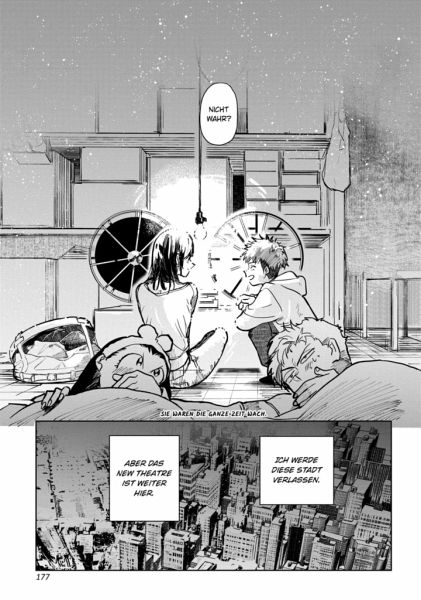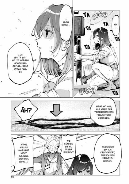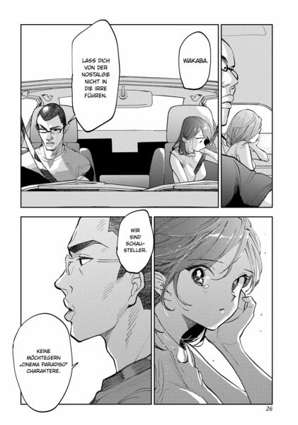Von der Stadt verschwindet schon wieder ein Retrokino... Jenes Kino, in dem sich Wakaba als Kind gerne Filme angesehen hatte. Daher schwört sie nun noch mehr als je zu vor, ihr Retrokino New Theatre als Filmvorführerin zu einem Ort zu machen, an dem Leute für immer und so oft sie wollen zurückkehren können.Band 2 bringt viele neue Beziehungsdynamiken zwischen den Charakteren mit sich! Nachdem Tamiya und Kosakai auch Aya kennen lernen, kommt es sogar dazu, dass Wakaba mit ihnen gemeinsam im Kino übernachtet?! Das New Theatre ist weder in fernen Erinnerungen verloren noch ein nostalgisches Überbleibsel! Es wird immer für uns hier sein!!