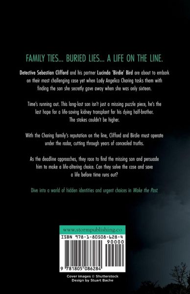 Family ties. Buried lies. A life on the line. Detective Sebastian Clifford and his partner Lucinda 'Birdie' Bird are about to embark on their most challenging case yet when Lady Angelica Charing tasks them with finding the son she secretly gave away when she was only sixteen. Time's running out. This long-lost son isn't just a missing puzzle piece, he's the last hope for a life-saving kidney transplant for his dying half-brother. The stakes couldn't be higher. With the Charing family's reputation on the line, Clifford and Birdie must operate under the radar, cutting through years of concealed truths. As the deadline approaches, they race to find the missing son and persuade him to make a life-altering choice. Can they solve the case and save a life before time runs out? Dive into a world of hidden identities and urgent choices in Wake The Past .