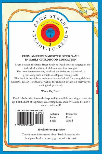 About¿The¿Bank¿Street Ready-To-Read Series More than seventy years of educational research and innovative teaching have given the Bank Street College of Education the reputation as America's most trusted name in early childhood education. Because no two children are exactly alike in their development, we have designed the Bank Street Ready-to-Read series in three levels to accommodate the individual stages of reading readiness of children ages four through eight. • Level 1: Getting Ready To Read- (Pre-K to Grade 1) Books are perfect for reading aloud with children who are getting ready to read or are just beginning to read words or phrases. • Level 2: Reading Together-(Grades 1 to 3) Books are written especially for children who are on their way to reading independently but who may need help. • Level 3: I Can Read It Myself-(Grades 2 to 3) Books are designed for children able to read on their own. They also can be enjoyed as read-alouds. Our three levels make it easy to select the books most appropriate for a child's development and enable him or her to grow with the series step by step. The Bank Street Ready-to-Read books also overlap and reinforce each other, further encouraging the reading process. We feel that making reading fun and enjoyable is the single most important thing that you can do to help children become good readers. And we hope you'll be a part of Bank Street's long tradition of learning through sharing. -The Bank Street College of Education WAKE UP, BABY! Kate's lively and imaginative efforts to wake up the baby only result in putting Kate to sleep instead. Kate's baby brother is sound asleep, and Kate will do anything to wake him up. But if a herd of elephants, a marching band, and a five-alarm fire don't work . . . what will?