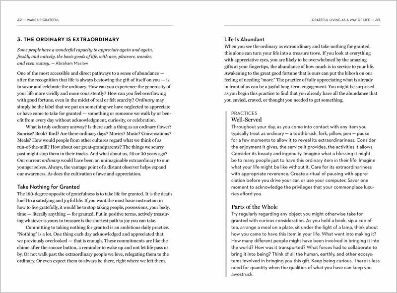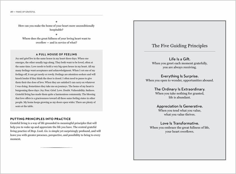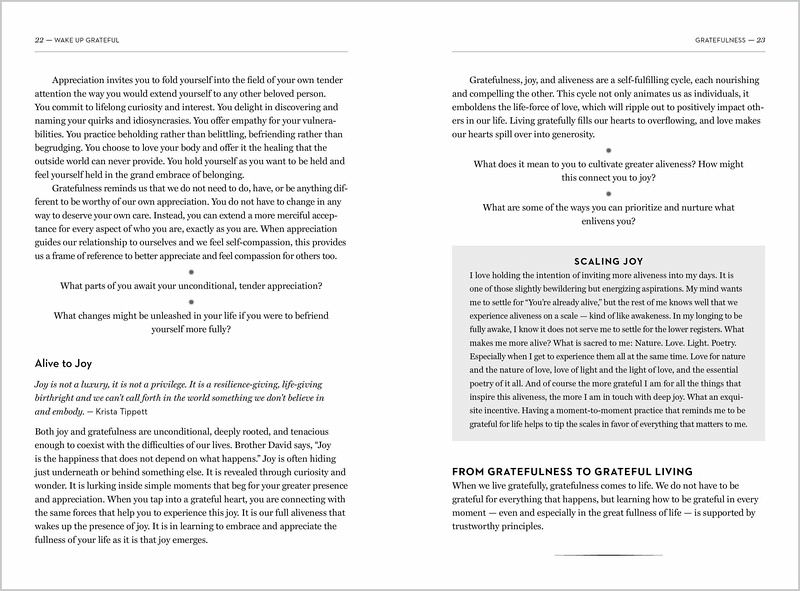 Foreword by Brother David Steindl-Rast Introduction: Alive and Grateful Part I: From Gratitude to Grateful Living 1 Gratefulness: Gratitude for the Great Fullness of Life 2 Grateful Living as a Way of Life: Five Guiding Principles 3 The Practice of Grateful Living: Stop. Look. Go. Part II: Grateful Living in the Real World 4 Savoring Uncertainty 5 Treasuring the Body as It Is 6 Appreciating Our Emotions 7 Befriending Our Full Selves 8 Cherishing Connection 9 Holding the Heart of Grief and Loss 10 Belonging in Nature 11 Celebrating Sufficiency 12 Healing a Hurting World 13 Living a Grateful Legacy Epilogue Beyond Grateful Exploring and Learning More
