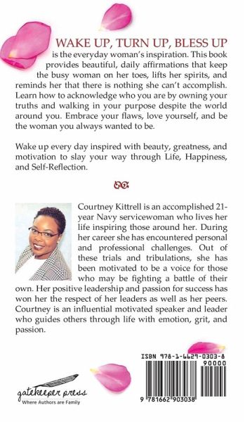 WAKE UP, TURN UP, BLESS UP is the everyday woman's inspiration. This book provides beautiful, daily affirmations that keep the busy woman on her toes, lifts her spirits, and reminds her that there is nothing she can't accomplish. Learn how to acknowledge who you are by owning your truths and walking in your purpose despite the world around you. Embrace your flaws, love yourself, and be the woman you always wanted to be. Wake up every day inspired with beauty, greatness, and motivation to slay your way through Life, Happiness, and Self-Reflection.