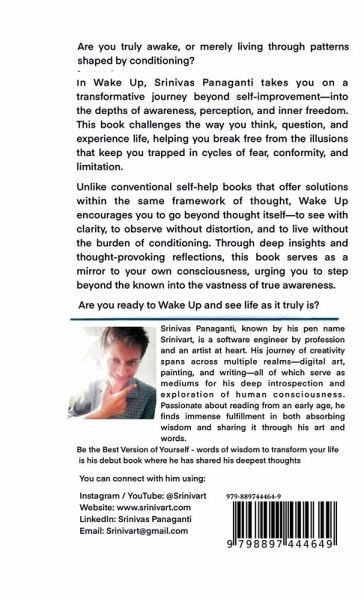 Book Description Are we truly evolving, or are we merely repeating the same patterns under different circumstances? Humans have advanced technologically, built civilizations, and shaped societies, yet inwardly, have we really changed? Do we still live in fear, conflict, and division, driven by the same instincts that ruled us centuries ago? Wake Up is not a self-help book filled with techniques or quick solutions. It is an invitation to observe, question, and understand the very nature of our thoughts, emotions, and conditioning. It challenges the illusions we hold about progress, happiness, and identity, urging us to look beyond superficial change and into the depths of our consciousness. With deep insight and clarity, this book explores the patterns that keep us trapped-craving security, seeking validation, conforming to beliefs, and living mechanically without true awareness. Through inquiry rather than instruction, it asks the fundamental questions: Can we free ourselves from the cycle of fear and desire? Is real transformation possible? What does it mean to live with complete awareness? If Be the Best Version of Yourself was about personal growth, Wake Up is about breaking free. This book is for those who seek more than answers-it is for those willing to see beyond the known, to step into the unknown, and to truly Wake Up.