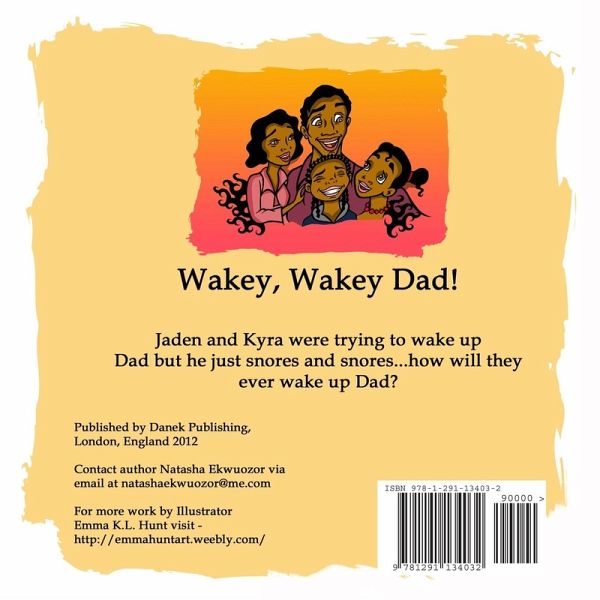 Wakey, Wakey Dad! is a fun story about two children, Jaden and Kyra, and their attempts to wake their dad up. Dad just snores on the sofa and refuses to awaken. The children try lots of different things, but which will work?
