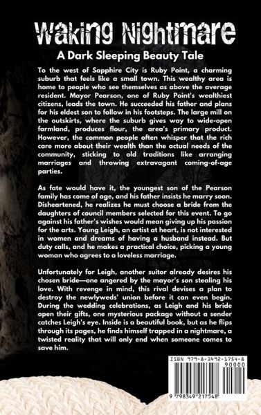 To the west of Sapphire City is Ruby Point, a charming suburb that feels like a small town. This wealthy area is home to people who see themselves as above the average resident. Mayor Pearson, one of Ruby Point's wealthiest citizens, leads the town. He succeeded his father and plans for his eldest son to follow in his footsteps. The large mill on the outskirts, where the suburb gives way to wide-open farmland, produces flour, the area's primary product. However, the common people often whisper that the rich care more about their wealth than the actual needs of the community, sticking to old traditions like arranging marriages and throwing extravagant coming-of-age parties. As fate would have it, the youngest son of the Pearson family has come of age, and his father insists he marry soon. Disheartened, he realizes he must choose a bride from the daughters of council members selected for this event. To go against his father's wishes would mean giving up his passion for the arts. Young Leigh, an artist at heart, is not interested in women and dreams of having a husband instead. But duty calls, and he makes a practical choice, picking a young woman who agrees to a loveless marriage. Unfortunately for Leigh, another suitor already desires his chosen bride-one angered by the mayor's son stealing his love. With revenge in mind, this rival devises a plan to destroy the newlyweds' union before it can even begin. During the wedding celebrations, as Leigh and his bride open their gifts, one mysterious package without a sender catches Leigh's eye. Inside is a beautiful book, but as he flips through its pages, he finds himself trapped in a nightmare, a twisted reality that will only end when someone comes to save him.