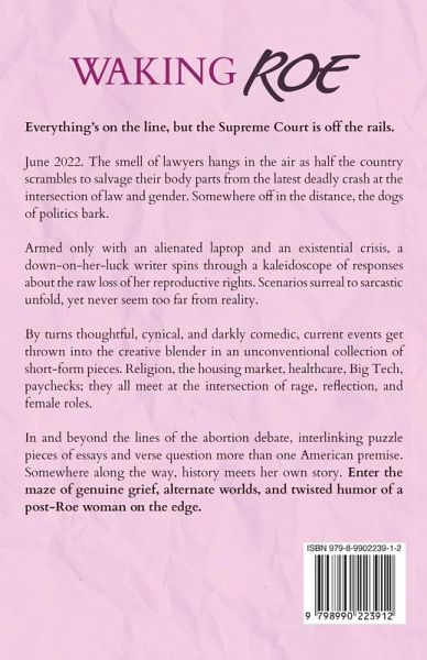 Everything's on the line, but the Supreme Court is off the rails. June 2022. The smell of lawyers hangs in the air as half the country scrambles to salvage their body parts from the latest deadly crash at the intersection of law and gender. Somewhere off in the distance, the dogs of politics bark. Armed only with an alienated laptop and an existential crisis, a down-on-her-luck writer spins through a kaleidoscope of responses about the raw loss of her reproductive rights. Scenarios surreal to sarcastic unfold, yet never seem too far from reality. By turns thoughtful, cynical, and darkly comedic, current events get thrown into the creative blender in an unconventional collection of short-form pieces. Religion, the housing market, healthcare, Big Tech, paychecks; they all meet at the intersection of rage, reflection, and female roles. In and beyond the lines of the abortion debate, interlinking puzzle pieces of essays and verse question more than one American premise. Somewhere along the way, history meets her own story. Enter the maze of genuine grief, alternate worlds, and twisted humor of a post-Roe woman on the edge. Please note: This content is intended for adults only. It features R-rated language and themes that may be upsetting for some readers. Discretion is advised.