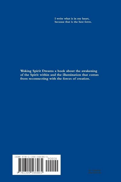 Waking Spirit Dreams A book about the awakening of the spirit within and the illumination that comes from reconnecting with the forces of creation. Poetry helped me to realize that we can be healed through cleansing our karma. By letting out my deep and innermost feeling through poetry I was able to sort thorough my problems and awaken my Spirit's Dreams. I've learned to let go of the unforgiveness that ailed my heart. I've healed my mind, soul and body living through loves qualities. I've forgiven myself for everything I've ever held against myself, as it is our God given right to be forgiven for everything, no matter what we've done. When I let go of the past and began to live in the moment a huge weight was lifted off my shoulder and I felt ten pounds lighter! By being humble I was able to open my heart through the golden flame of God's love. I am thankful for poetry as it has opened many doors for me. I hope you enjoy!