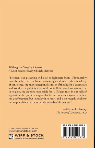 Waking the Sleeping Church A Must-read for Every Church Member ""Brethren, our preaching will bear its legitimate fruits. If immorality prevails in the land, the fault is ours in a great degree. If there is a decay of conscience, the pulpit is responsible for it. If the church is degenerate and worldly, the pulpit is responsible for it. If the world loses its interest in religion, the pulpit is responsible for it. If Satan rules in our halls of legislation, the pulpit is responsible for it. Let us not ignore this fact, my dear brethren; but let us lay it to heart, and b thoroughly awake to our responsibility in respect to the morals of this nation."" Charles G. Finney The Decay of Conscience, 1873
