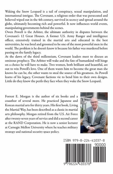They call themselves Keepers of the Covenant, the Illuminati, God's one true Church. Believed to be wiped out in the 4th century, they survived in secret and spread around the globe, ultimately becoming rich and powerful, manipulating governments and influencing world events from behind the scenes. Owen Powell is the Arbiter, the ultimate authority and enforcer in disputes between the Covenant's 12 Great Houses. A former U.S. Army Ranger and intelligence officer, extensively trained in the martial arts and educated in the best universities, he was carefully groomed to be one of the most powerful men in the world. The problem is he doesn't know it because his father was murdered before passing on the family legacy. At the dawn of the third millennium, Covenant leaders meet to discuss an ominous prophecy. The Arbiter will wake and the fate of humankind will hinge on a choice he will have to make. Two women, both brilliant and beautiful, are out to win Powell's love. One of them wants him to become the great man she knows he can be, the other wants to steal the source of his greatness. As Powell learns of his legacy, Covenant factions vie to bend him to their own designs. Little do they know the perils they face when they wake the Snow Leopard.