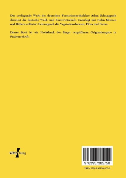 Das vorliegende Werk des deutschen Forstwissenschaftlers Adam Schwappach skizziert die deutsche Wald- und Forstwirtschaft. Unterlegt mit vielen Skizzen und Bildern erläutert Schwappach die Vegetationsformen, Flora und Fauna.