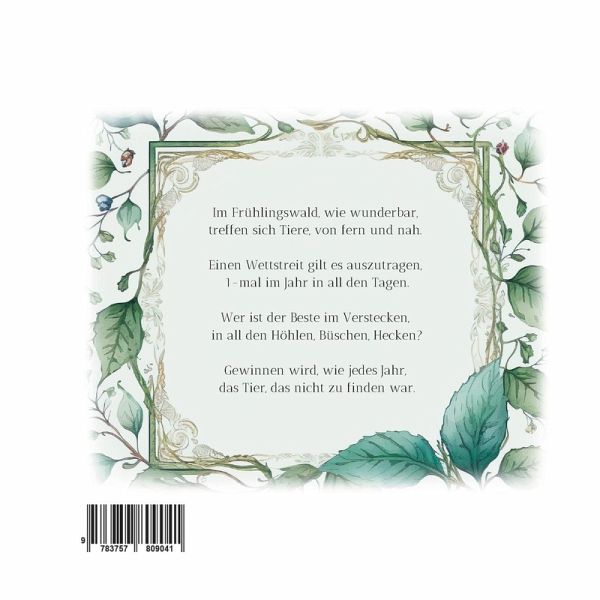 "Waldgeschichten" ist ein im Vintage Stil gehaltenes und in Reimform verfasstes Vorlesebuch für Kinder. Im Frühlingswald treffen sich Tiere aus fern und nah zum jährlichen Versteckspiel Wettbewerb. Eichhörnchen, Igel, Hase, Dachs, Reh und der Biber wollen den Titel des Versteckspiel-Meisters für sich beanspruchen. Der Fuchs als Sucher gibt sich alle Mühe, die Tiere in ihren Verstecken auszumachen und vertraut dabei auf seine Sinne und seine Erfahrung beim Aufspüren der Waldtiere. Wer wird der Sieger sein in diesem Wettstreit oder gibt es gar eine Überraschung?