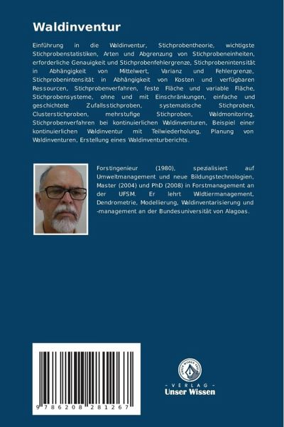 Einführung in die Waldinventur, Stichprobentheorie, wichtigste Stichprobenstatistiken, Arten und Abgrenzung von Stichprobeneinheiten, erforderliche Genauigkeit und Stichprobenfehlergrenze, Stichprobenintensität in Abhängigkeit von Mittelwert, Varianz und Fehlergrenze, Stichprobenintensität in Abhängigkeit von Kosten und verfügbaren Ressourcen, Stichprobenverfahren, feste Fläche und variable Fläche, Stichprobensysteme, ohne und mit Einschränkungen, einfache und geschichtete Zufallsstichproben, systematische Stichproben, Clusterstichproben, mehrstufige Stichproben, Waldmonitoring, Stichprobenverfahren bei kontinuierlichen Waldinventuren, Beispiel einer kontinuierlichen Waldinventur mit Teilwiederholung, Planung von Waldinventuren, Erstellung eines Waldinventurberichts.