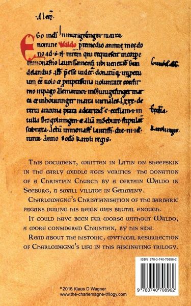 Charlemagne's Christianisation of the pagans in the Dark Ages of Medieval Europe was brutal enough.It could have been far worse without Waldo, a more considered Christian, by his side.Who was Waldo? I hear you ask.An original document, written in Latin on sheepskin in the early middle ages verifies the donation of a Christian church by a certain Waldo in Seeburg, a small village in Southern Germany.No further historic records of this mysterious Waldo existed. I spent two years of intense research to unravel his alleged identity.I concluded, that Waldo and Charlemagne, the mighty Carolus Magnus were like the priest and the soldier, who shared a lifelong bond forged in childhood. They saw themselves as Christianity's cross and sword, put on earth by God to build and defend Christendom in medieval Europe.Both men differed in their approach to converting the pagans. Charlemagne, the soldier, believed in a swift decision and the beheading by sword of the unwilling: My god is your god.My will be done.Waldo, the priest, believed in a more gentle missionary way, bringing salvation with bread, wine and fear of the unknown, and the promise of a better life in heaven: Jesus died for us on the cross for our redemption. Thy kingdom come. Amen!They also shared a terrible secret known only to themselves and God. It is a secret that history failed to uncover in the last 1250 years.Those who read this book with an open mind, will hopefully care more about the authenticity of their spiritual experience than the historical authenticity of every chronicled aspect in this novel.