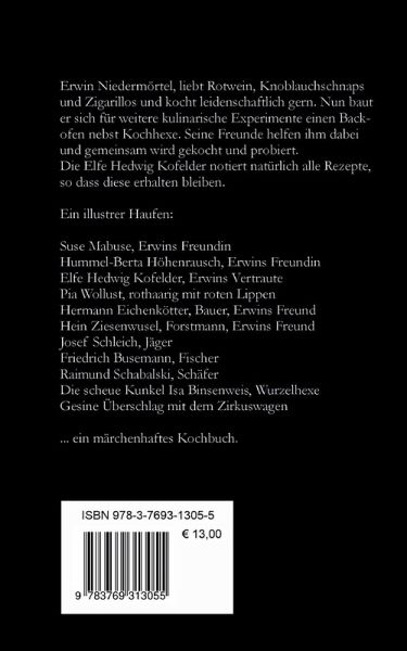 Den Waldschrat Erwin Niedermörtel kennen wir schon aus dem Buch Kochen wie ein Waldschrat. Nun baut er sich für weitere kulinarische Experimente einen Backofen nebst Kochhexe und seine Freunde helfen ihm dabei. Der Freundeskreis wird größer und illustrer. Die Elfe Hedwig von Kofelder notiert natürlich alle Rezepte, so dass sie dem Leser erhalten bleiben.
