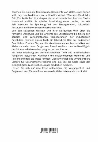 Tauchen Sie ein in die faszinierende Geschichte von Wales, einer Region voller Mythen, Traditionen und kultureller Vielfalt. "Wales im Wandel der Zeit: Von keltischen Ursprüngen bis zur viktorianischen Ära" von Taylor Hammond erzählt die epische Entwicklung eines Landes, das seit Jahrtausenden im Spannungsfeld von Naturgewalten, kulturellem Austausch und historischen Umbrüchen steht.Von den keltischen Wurzeln und ihrer spirituellen Welt über die römische Eroberung und die Ankunft des Christentums bis hin zu den sozialen und wirtschaftlichen Veränderungen der industriellen Revolution zeichnet dieses Buch ein lebendiges Bild der walisischen Geschichte. Erleben Sie, wie die atemberaubenden Landschaften von Wales - von den rauen Bergen von Snowdonia bis zu den sanften Hügeln des Südens - die Menschen prägten und inspirierten.Mit einer Mischung aus wissenschaftlicher Tiefe und erzählerischem Feingefühl beleuchtet Hammond die entscheidenden Momente und Persönlichkeiten, die Wales form-ten. Dieses Werk ist eine unverzichtbare Lektüre für Geschichtsinteressierte und alle, die die Seele eines der einzigartigsten Landstriche Europas entdecken möchten.Lassen Sie sich auf eine Reise mitnehmen, die Vergangenheit und Gegenwart von Wales auf eindrucksvolle Weise miteinander verbindet.