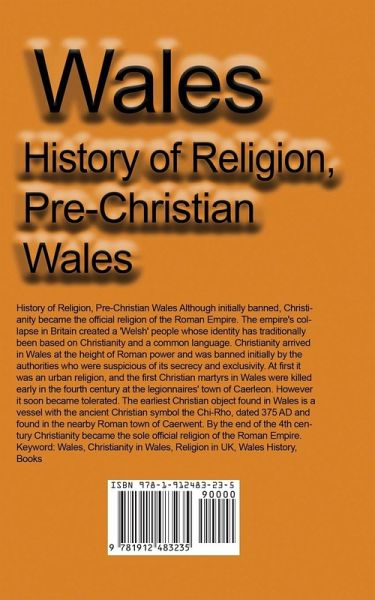 History of Religion, Pre-Christian Wales Although initially banned, Christianity became the official religion of the Roman Empire. The empire's collapse in Britain created a 'Welsh' people whose identity has traditionally been based on Christianity and a common language. Christianity arrived in Wales at the height of Roman power and was banned initially by the authorities who were suspicious of its secrecy and exclusivity. At first it was an urban religion, and the first Christian martyrs in Wales were killed early in the fourth century at the legionnaires' town of Caerleon. However it soon became tolerated. The earliest Christian object found in Wales is a vessel with the ancient Christian symbol the Chi-Rho, dated 375 AD and found in the nearby Roman town of Caerwent. By the end of the 4th century Christianity became the sole official religion of the Roman Empire.