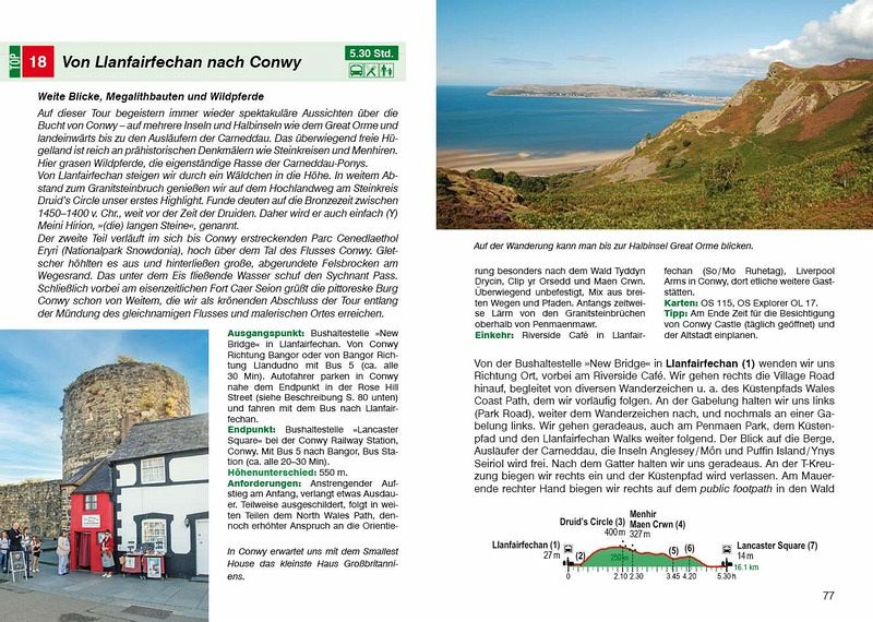 Der Wanderführer stellt 50 abwechslungsreiche Touren in Wales vor - vom entspannten Familienausflug bis zur anspruchsvollen Bergwanderung. Auch kulturinteressierte Reisende kommen auf ihre Kosten: Viele Wanderungen lassen sich wunderbar mit dem Besuch historischer Orte, Burgen oder Städte verbinden.
