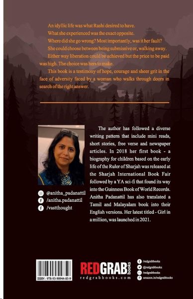 An idyllic life was what Rashi desired to have. What she experienced was the exact opposite. Where did she go wrong? Most importantly was it her fault? She could choose between being submissive or walking away. Either way liberation could be achieved but the price to be paid was high. The choice was hers to make. This book is a testimony of hope courage and sheer grit in the face of adversity faced by a woman who walks through doors in search of the right answer.