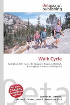 Please note that the content of this book primarily consists of articles available from Wikipedia or other free sources online. In animation, a walk cycle is a sequence of frames representing a (usually human) walk movement. Walk cycles are important, because when a walking person appears in an animation, the walk cycle simply can be looped over and over, without having to animate each step again.There exist many techniques to create walk cycles, for example in pixel art and 3D computer graphics. Different poses can be modelled in a 3D modeller, and frames in between interpolated. Or they can be hand drawn, using techniques like rotoscoping.For a human walk cycle, poses like passing point, high point, contact point and recoil point can be identified as important frames defining the walk (For example in ).Besides the apparent move of the legs, many more details are necessary for a convincing walk cycle, like arms, head and torsion of the whole body. Also the bottoms of the feet must squash slightly, meaning stretch out, when the pressure of the body is placed on them.