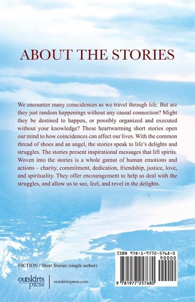 We encounter many coincidences as we travel through life. But are they just random happenings without any causal connection? Might they be destined to happen, or possibly organized and executed without your knowledge? These heartwarming short stories open our mind to how coincidences can affect our lives. With the common thread of shoes and an angel, the stories speak to life's delights and struggles. The stories present inspirational messages that lift spirits. Woven into the stories is a whole gamut of human emotions and actions - charity, commitment, dedication, friendship, justice, love, and spirituality. They offer encouragement to help us deal with the struggles, and allow us to see, feel, and revel in the delights.