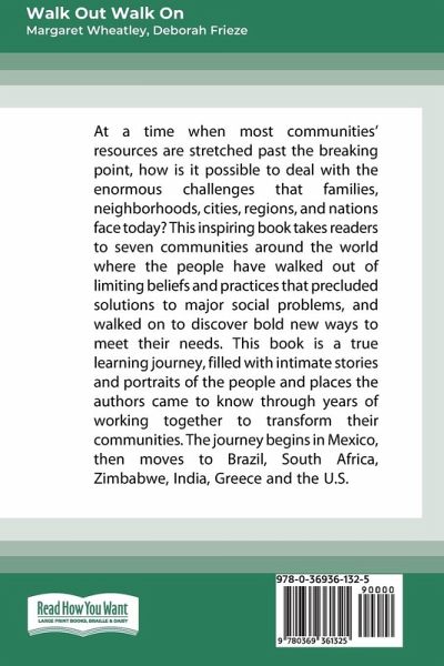 At a time when most communities' resources are stretched past the breaking point, how is it possible to deal with the enormous challenges that families, neighborhoods, cities, regions, and nations face today? This inspiring book takes readers to seven communities around the world where the people have walked out of limiting beliefs and practices that precluded solutions to major social problems, and walked on to discover bold new ways to meet their needs. This book is a true learning journey, filled with intimate stories and portraits of the people and places the authors came to know through years of working together to transform their communities. The journey begins in Mexico, then moves to Brazil, South Africa, Zimbabwe, India, Greece and the U.S. The authors' lives and ways of thinking have been transformed by these experiences and relationships - an experience they hope to recreate for the reader through vivid prose and photos. The reader will experience first hand how a change of beliefs about people results in new capacities and the possibility of a more healthy future.