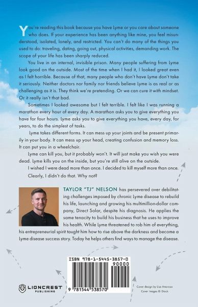 If you have Lyme disease, you know firsthand the desperation that comes from being misdiagnosed, misunderstood, and misdirected. You need straight answers and real solutions, but all you get is the runaround. Riding high as a hard-driving entrepreneur in the solar industry, Taylor Nelson contracted Lyme disease in his midtwenties. Spiraling down swiftly, he tried everything to feel like himself again, turning himself into a human guinea pig. He took coffee enemas and gave himself ozone injections. Police officers transported him to a psychiatric hospital (he talked his way out), and he gave sales sermons while on LSD-all because of Lyme. Years of experimentation and determination taught him how to manage a disease that can seem unmanageable. Candid and raw, Nelson doesn't hold back. He shares his deeply personal story, what he tried, how it worked, and how to live a full life in the face of a devastating disease.