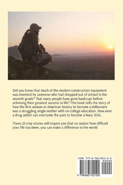 Did you know that much of the modern construction equipment was invented by someone who had dropped out of school in the seventh grade? That a lot of people have gone bankrupt before reaching their greatest success in life. That even a drug addict can overcome the past to become a Navy SEAL. That the first woman in American history to become a millionaire was a struggling single mother with no college education. These 25 true stories will inspire you that no matter how difficult your life has been, you can make a difference in the world.