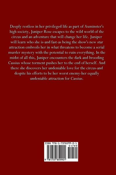 Deeply restless in her privileged life as part of Axminster's high society, Juniper Rose escapes to the wild world of the circus and an adventure that will change her life. Juniper will learn who she is-and fast-as being the show's new star attraction embroils her in what threatens to become a serial murder mystery with the potential to ruin everything. In the midst of all this, Juniper encounters the dark and brooding Cassius whose torment pushes her to the end of herself. And there she discovers her undeniable love for the circus-and despite his efforts to be her worst enemy-her equally undeniable attraction for Cassius in this riveting tale.