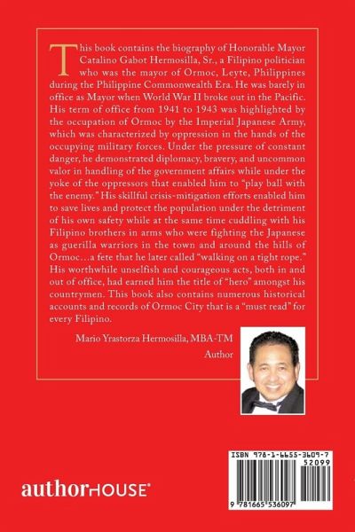 This book contains the biography of Mayor Catalino Gabot Hermosilla, Sr., a Filipino politician, who was the mayor of Ormoc, Leyte, Philippines during World War II from 1941 to 1943 during the occupation of Ormoc by the Imperial Japanese military. His term of office was characterized by danger in the hands of the occupying military force where he demonstrated uncommon valor with the skillful and diplomatic handling of the affairs of the government under the yoke of the oppressors while cuddling with his Filipino brother-in-arms who were fighting the Japanese as guerilla warriors in the town and around the hills of Ormoc while at the same time, "played ball with the enemy" in order to save lives and protect the population under the detriment of his own safety...a fete that he later called "walking on a tight rope." It also contain numerous historical accounts and records of Ormoc that is a "must read" to every fellow Ormocanon. Mario Yrastorza Hermosilla, MBA-TM Author