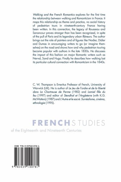 Walking and the French Romantics explores for the first time the relationship between walking and Romanticism in France. It maps this relationship as theme and practice, no social history of pedestrian tours in nineteenth-century France having been written. In this connection, the legacy of Rousseau and Senancour proves stronger than has been recognized, in spite of the pull of Paris and its legendary urban flâneurs. The author brings out the role of painters and of figures like Nodier, Didier and Dumas in encouraging writers to go (or imagine themselves) on the road and shows how and why pedestrian touring became popular with authors in the late 1830s. He discusses the impact of this fashion on major Romantic writers such as Nerval, Sand and Hugo. Finally he describes how walking lost its particular cultural connection with Romanticism in the 1840s.