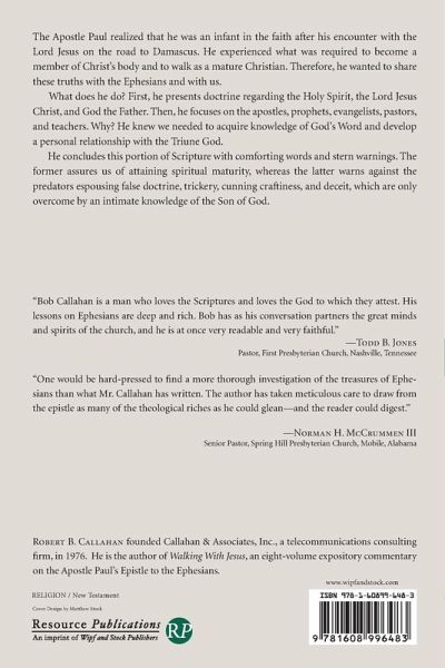 The Apostle Paul realized that he was an infant in the faith after his encounter with the Lord Jesus on the road to Damascus. He experienced what was required to become a member of Christ's body and to walk as a mature Christian. Therefore, he wanted to share these truths with the Ephesians and with us. What does he do? First, he presents doctrine regarding the Holy Spirit, the Lord Jesus Christ, and God the Father. Then, he focuses on the apostles, prophets, evangelists, pastors, and teachers. Why? He knew we needed to acquire knowledge of God's Word and develop a personal relationship with the Triune God. He concludes this portion of Scripture with comforting words and stern warnings. The former assures us of attaining spiritual maturity, whereas the latter warns against the predators espousing false doctrine, trickery, cunning craftiness, and deceit, which are only overcome by an intimate knowledge of the Son of God.