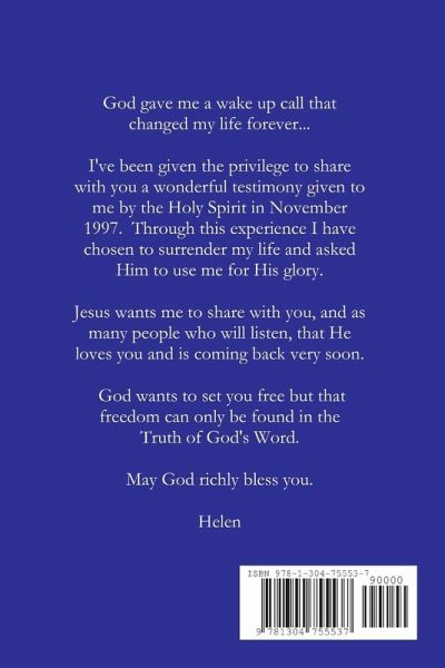 God gave me a wake up call that changed my life forever. I've been given the privilege to share with you a wonderful testimony given to me back in November of 1997 by the Holy Spirit. Through this experience I have chosen to surrender my life and asked Him to use me for His glory. Feel free to preview my book and may God richly bless you.