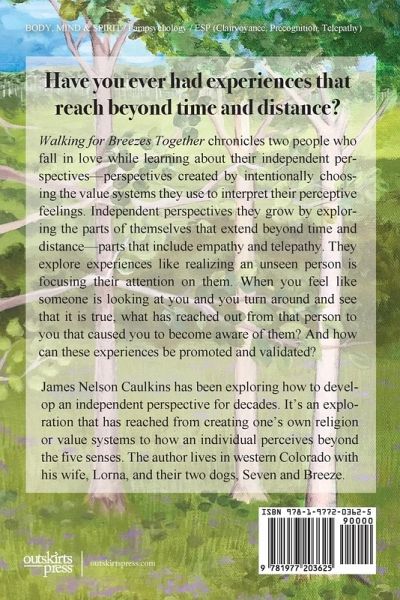 Have you ever had experiences that reach beyond time and distance? Walking for Breezes Together chronicles two people who fall in love while learning about their independent perspectives-perspectives created by intentionally choosing the value systems they use to interpret their perceptive feelings. Independent perspectives they grow by exploring the parts of themselves that extend beyond time and distance-parts that include empathy and telepathy. They explore experiences like realizing an unseen person is focusing their attention on them. When you feel like someone is looking at you and you turn around and see that it is true, what has reached out from that person to you that caused you to become aware of them? And how can these experiences be promoted and validated?