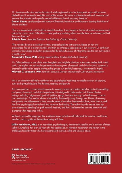 'Dr. Gillie Jenkinson is one of the most thoughtful and insightful clinicians in the cultic studies field. In this book, she applies her personal experience and many years of research and clinical work to construct a practical workbook for people leaving cultic groups. This is not simply an explanation of why people join and leave cults. The book provides what would be called 'homework' in some counseling approaches. It is interactive and asks 'participants' (they are much more than readers) to think and write, to complete forms, to wrestle with their memories, thoughts, and goals for the future. 'Participating' in this handbook could be worth thousands of dollars in consultation time. The book is a wonderful resource, especially for those former members who do not have the resources to travel and pay for professional consultation. I recommend it highly.'