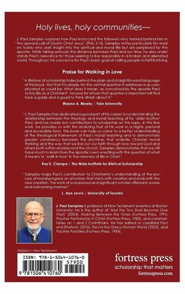 Across the history of Christianity, Paul's letters have been mined for doctrines like original sin and the "Fall" of Adam or for arguing that justification is by faith, not by works. J. Paul Sampley's concern is not first with doctrines but with how Paul instructed, encouraged, built up -- and, at times, chided -- the followers who trekked behind him in "the upward call of God in Christ Jesus," (Phil. 3:14). Sampley writes particularly for readers today who seek insight into the spiritual and moral life but are perplexed by the apostle. While taking seriously the distance between Paul and our time, he also understands Paul's relevance for those seeking to live responsibly in a broken and alienated world. Sampley articulates how important themes in his letters -- the grand narrative of God's action, the new creation, the power of baptism and of the Lord's Supper -- serve the basic goal of calling people to faithful living and to "walking in love," for God and for each other. Walking in Love is a clear exposition of the ethical dimension of Paul's complex theology.