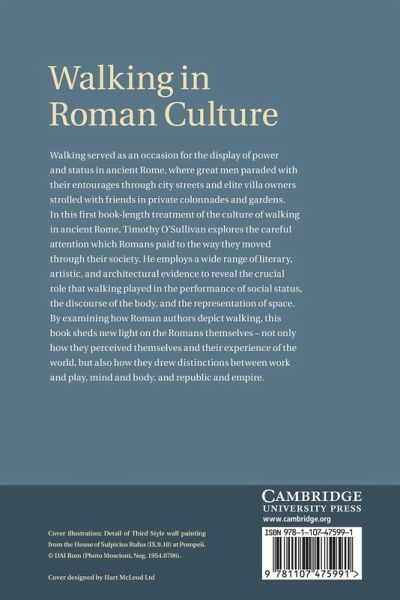 Walking served as an occasion for the display of power and status in ancient Rome, where great men paraded with their entourages through city streets and elite villa owners strolled with friends in private colonnades and gardens. In this book-length treatment of the culture of walking in ancient Rome, Timothy O'Sullivan explores the careful attention which Romans paid to the way they moved through their society. He employs a wide range of literary, artistic and architectural evidence to reveal the crucial role that walking played in the performance of social status, the discourse of the body and the representation of space. By examining how Roman authors depict walking, this book sheds new light on the Romans themselves - not only how they perceived themselves and their experience of the world, but also how they drew distinctions between work and play, mind and body, and Republic and Empire.