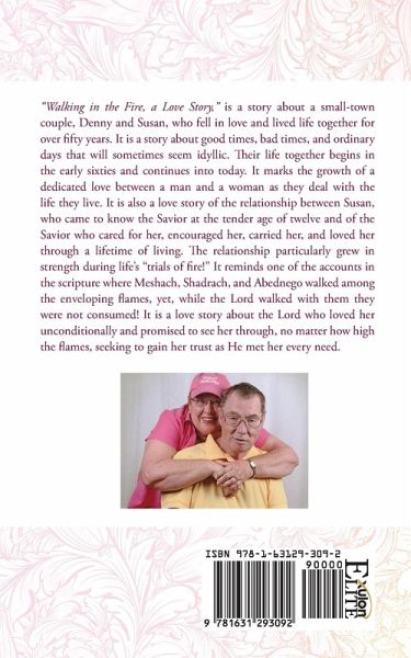 "Walking in the Fire, a Love Story," is a story about a small-town couple, Denny and Susan, who fell in love and lived life together for over fifty years. It is a story about good times, bad times, and ordinary days that will sometimes seem idyllic. Their life together begins in the early sixties and continues into today. It marks the growth of a dedicated love between a man and a woman as they deal with the life they live. It is also a love story of the relationship between Susan, who came to know the Savior at the tender age of twelve and of the Savior who cared for her, encouraged her, carried her, and loved her through a lifetime of living. The relationship particularly grew in strength during life's "trials of fire!" It reminds one of the accounts in the scripture where Meshach, Shadrach, and Abednego walked among the enveloping flames, yet, while the Lord walked with them they were not consumed! It is a love story about the Lord who loved her unconditionally and promised to see her through, no matter how high the flames, seeking to gain her trust as He met her every need.