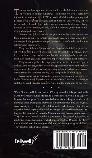 Throughout history, men and women have asked the same questions in relation to human suffering. If someone we love is seriously injured in an accident, we ask, 'Why do dreadful things happen to good people?' If we are going through a dark and difficult time, we ask, 'Where is God when I need Him?' When we see thousands of people dying because of war or famine, we ask, 'If God is powerful, why does he not stop such tragedies occurring?' Graeme and Julia Cann do not presume to have the answers to these questions but seek to help their readers create a space where they can escape the hopelessness and powerlessness that often descends upon sufferers and their carers. They do this by speaking out of over 60 years of ministry experience, where they have pastored and counselled thousands of people, as they have confronted times of darkness. Neither of them has been without their own midnights, and their own experiences enrich their narrative. They weave together the experiences and words of biblical figures such as David and Job and the stories of six people who, between them have experienced physical, mental, and psychological pain. Each of them has not only survived but continue serving God and people faithfully today. Recognising that in this world it is not a question of if but when we suffer, Graeme and Julia write out of a firm belief that God is sovereign and that he can be trusted completely, even in the midnights of our lives.